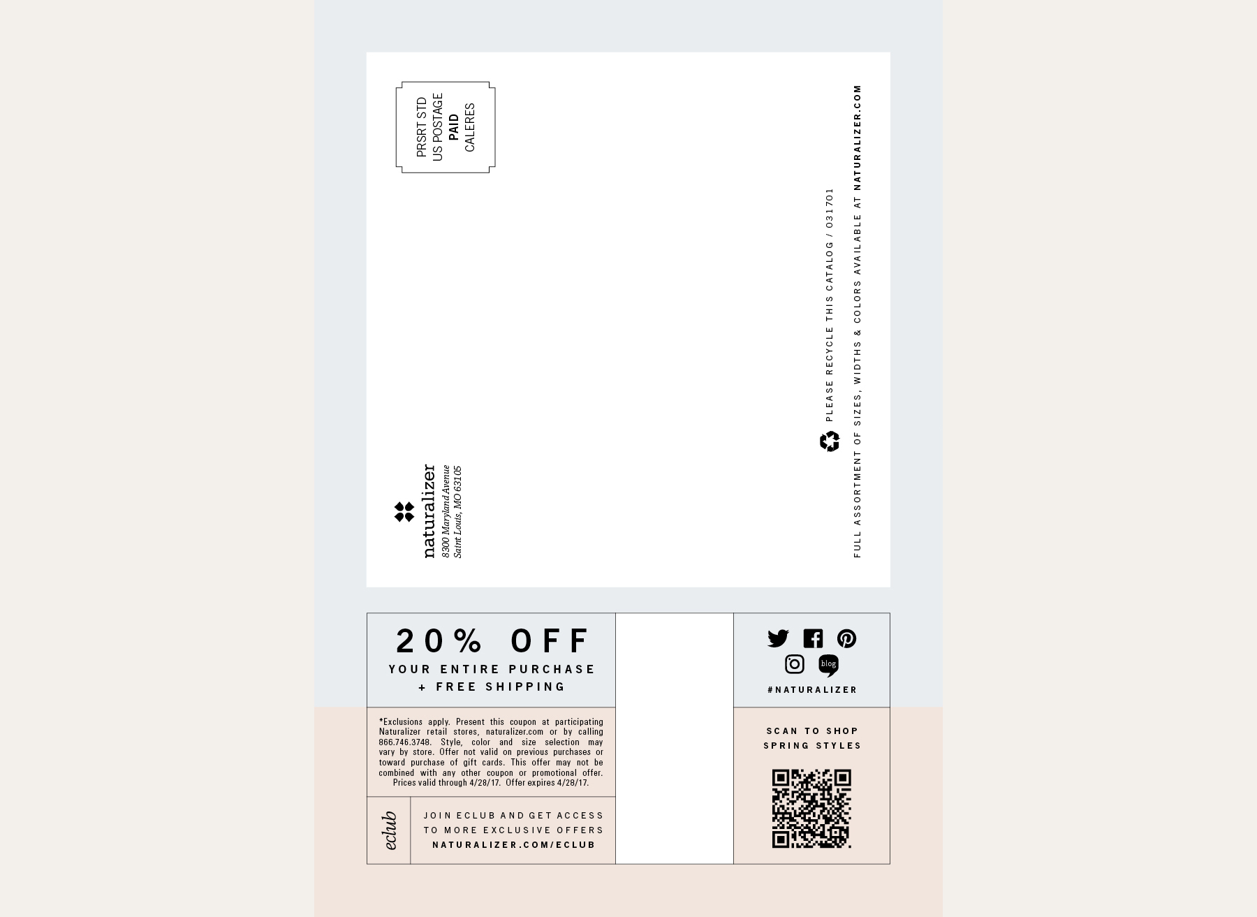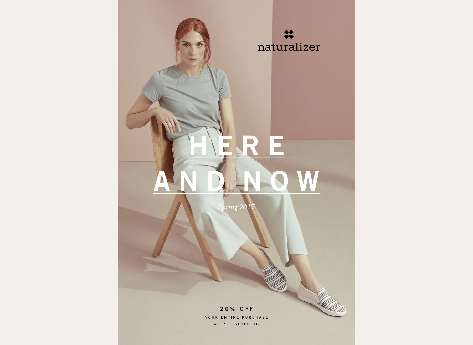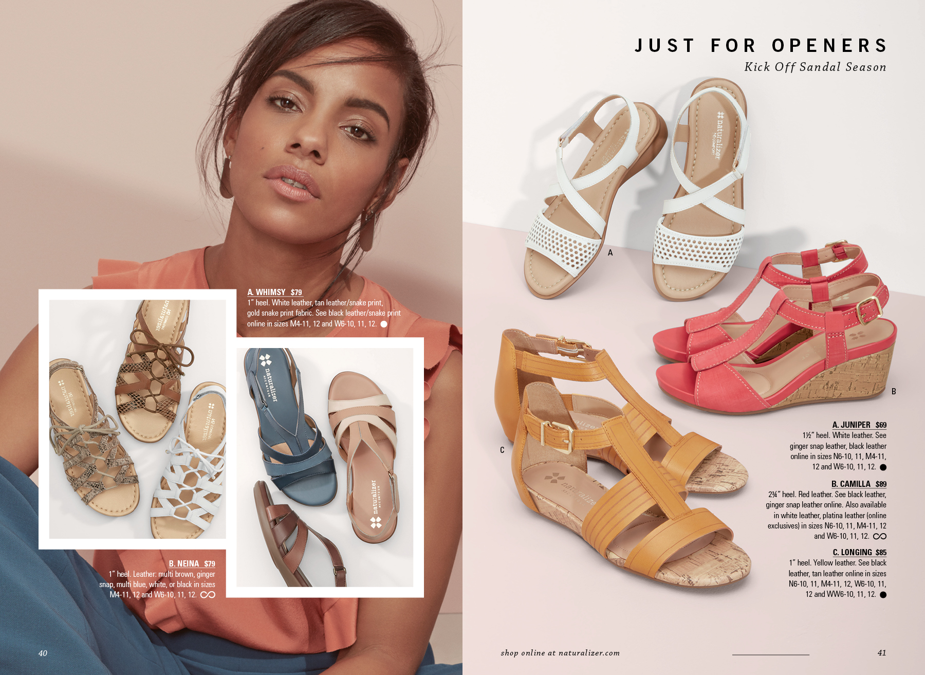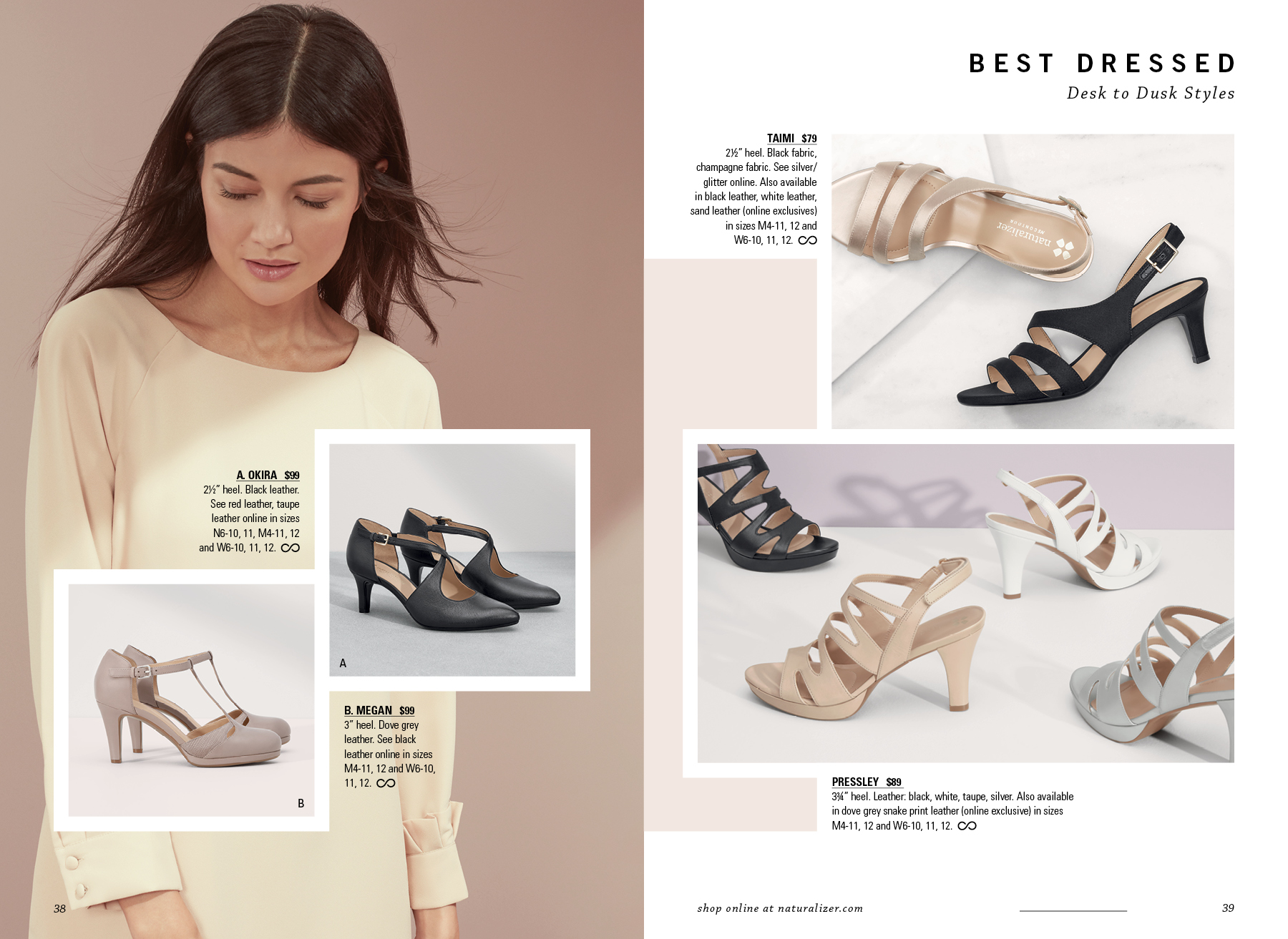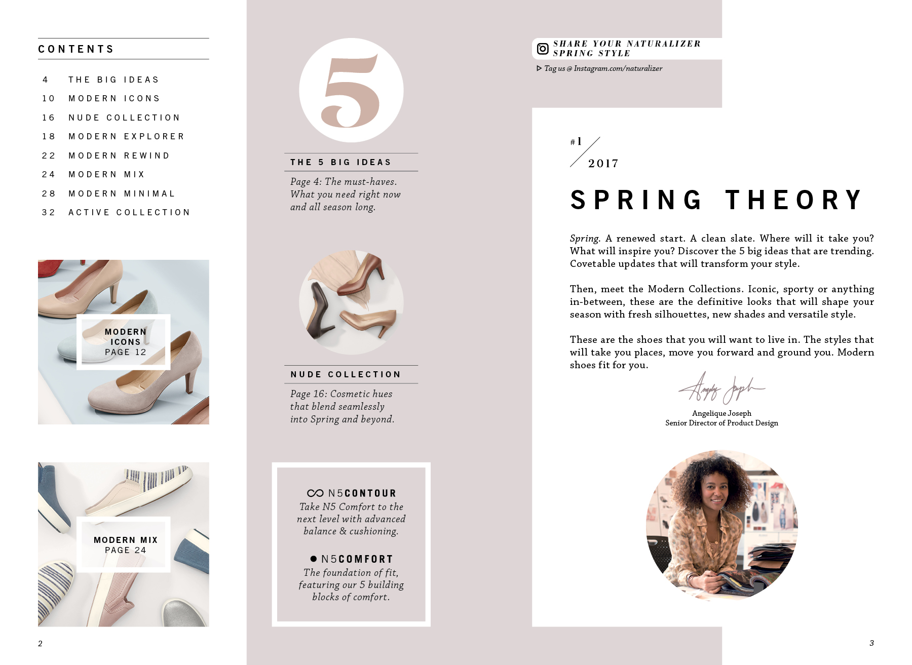 Naturalizer wanted a partner to drive all creative and production aspects of this major international sales vehicle. We worked seamlessly with their Brand Marketing, Merchandising, CRM and Creative teams to re-design the catalog from the ground up. We started with pagination, ensuring a smooth journey through the Spring line, while carefully highlighting key styles. We delivered a new, modern layout design driven by 8 style and trend-based product stories to enhance consumer engagement. We planned over 150 shots, from color, material and detail focus, to set fabrication, propping, shoe positions and camera angle. Playground sourced the photographer, studio and oversaw all production departments and art direction during the 5 day shoot. We also managed the entire post-production process, from retouch, color correction and proofing, to final file assembly, pre-press and printer liaison.